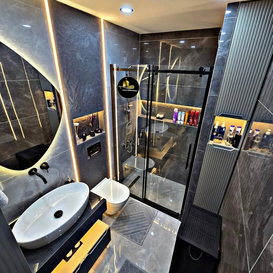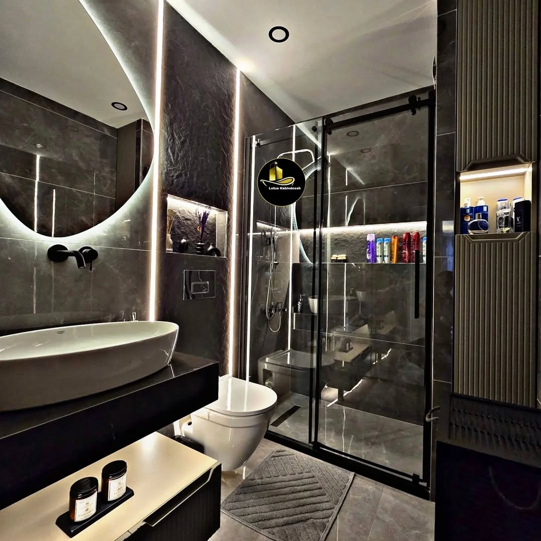 نمای نزدیک کابین دوش فریم‌لس لوتوس با طراحی مدرن و مینیمال مناسب حمام لوکس