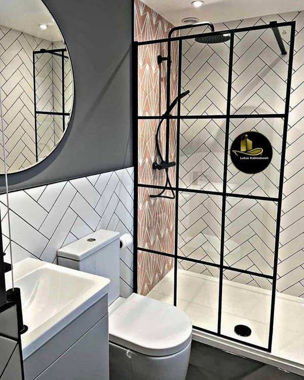 پنل تک شیشه دوش با طرح 4خونه مشکی